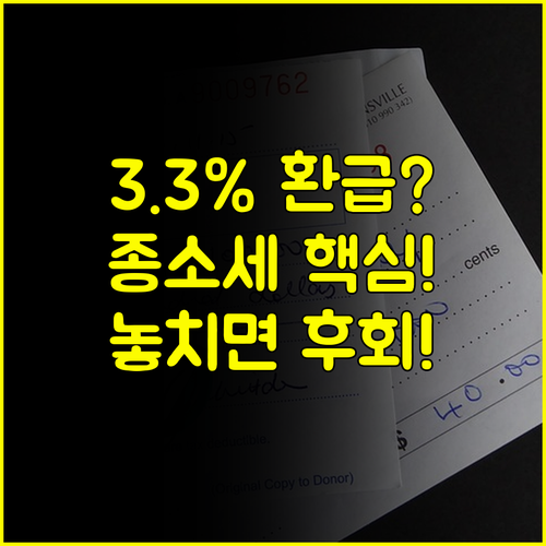 목차 성공적인 신고를 위한 핵심 원리 3가지 이해 – 1. 3.3% 원천징수의 실체와 환급의 가능성 – 2. 경비율 (단순/기준) 적용을 통한 절세 전략 – 3. 최종 납부/환급 결정 공식과 공제 입력의 중요성 프리랜서 환급 극대화 전략: 종합소득세 계산기 활용 4대 체크리스트 – 1. 수입 규모에 따른 신고 유형 및 경비율 판단 (단순 vs. 기준) – …